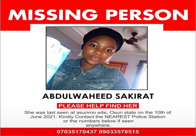 If you have any useful information, please contact 09054424261,07016411288. or nearest Police Station